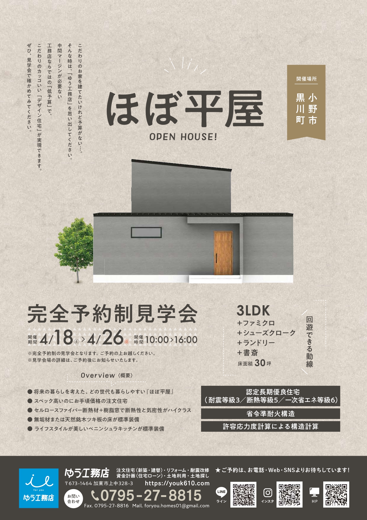 『イベント予約お申し込みフォーム』もしくは『電話 0795-27-8815 』に希望日時をお伝えください